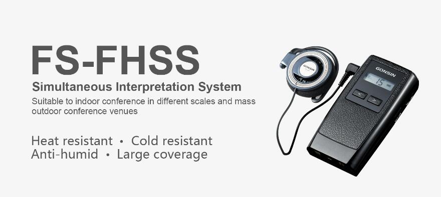 FS-FHSS interpretation system utilizes GONSIN self-developed FS-FHSS technology. This brandnew wireless digital communication technology is developed from the hopping communication technology with frequency selection technology. The system automatically detects and selects the frequency spectrum, ensure the selected frequency spectrum is clear. The frequency-selecting and frequency-hopping double mechanism makes stable communication.